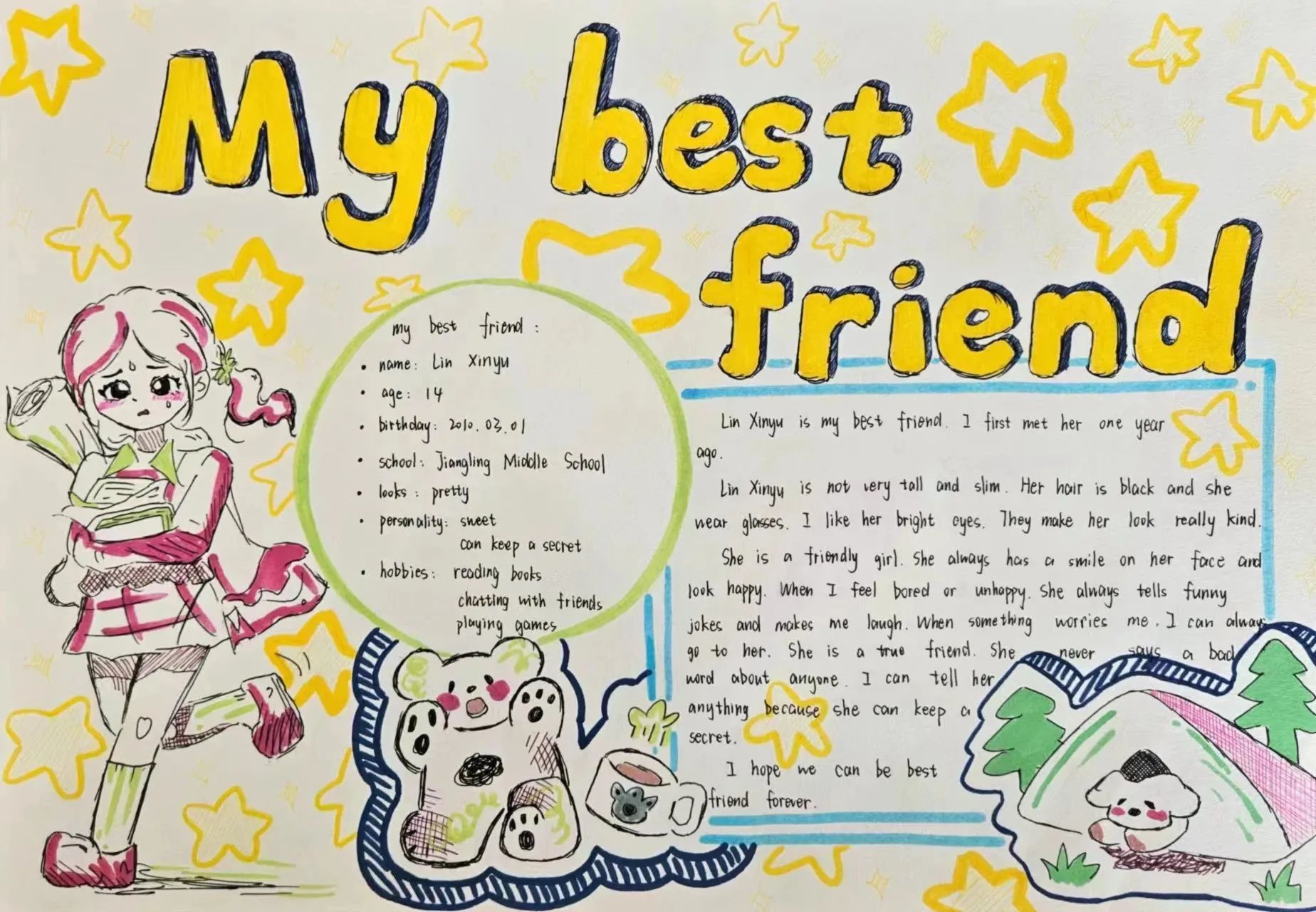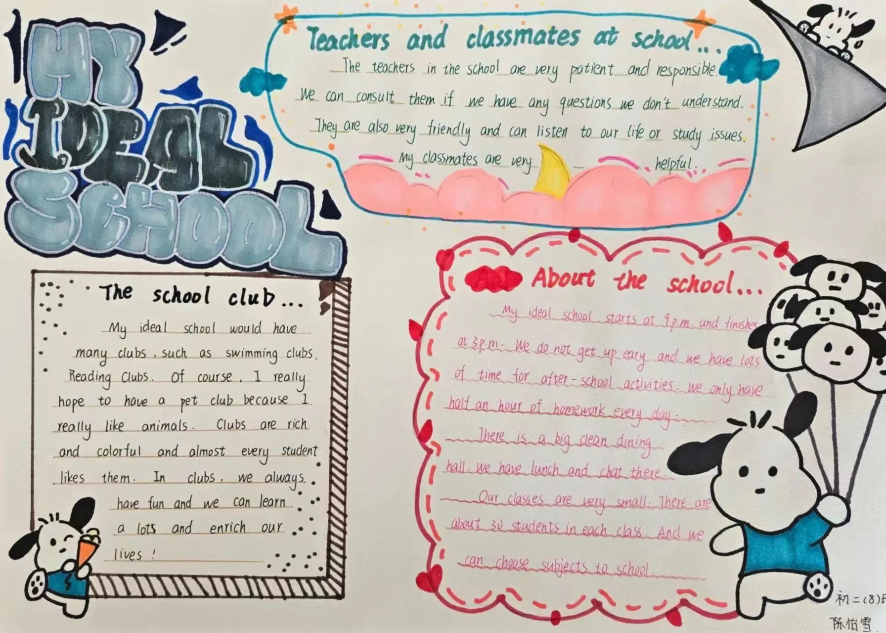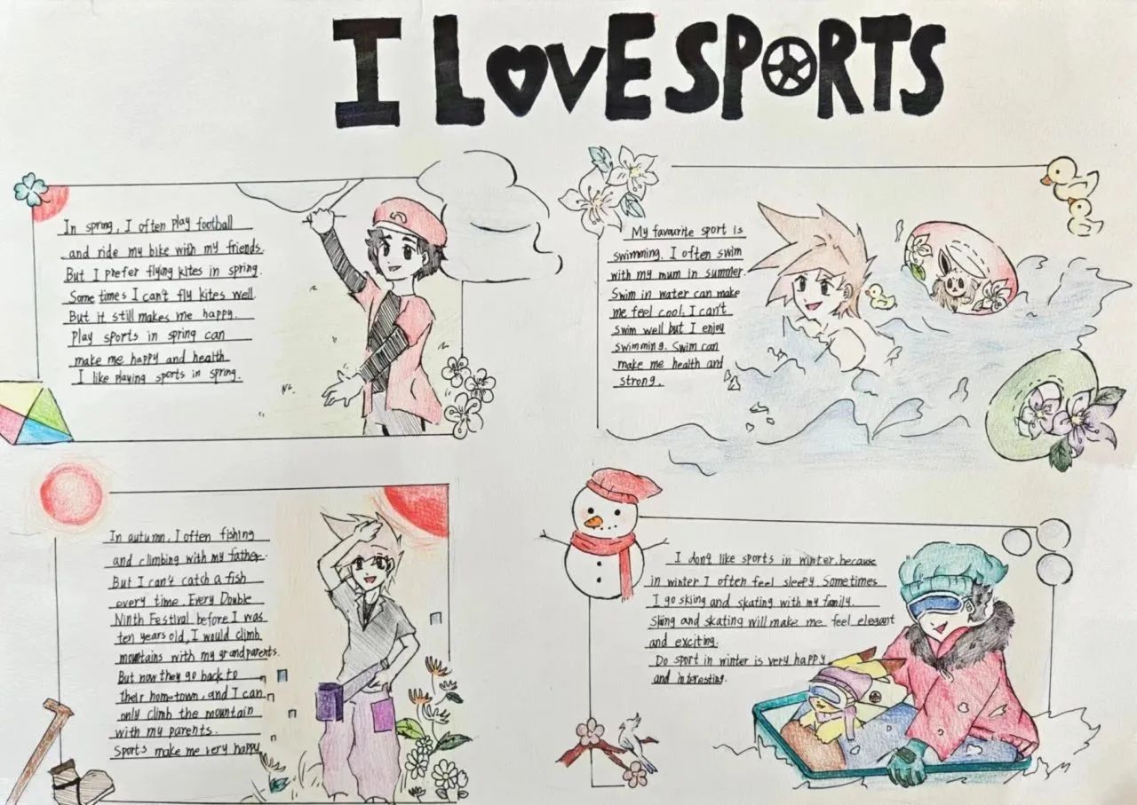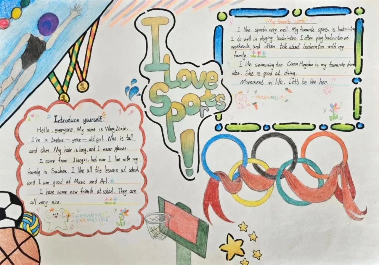 主题小报:"I love sports""My best friend""My ideal school""National Day": 提高学生的写作水平,同时锻炼他们运用英语表达自己观点的能力。