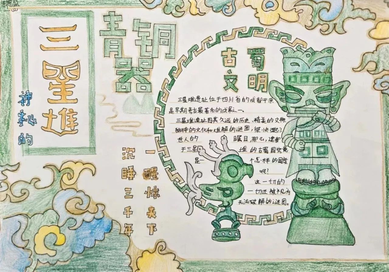 三星堆小报、思维导图: 通过小报和思维导图,帮助学生更好地理解历史事件,培养他们的综合分析能力。