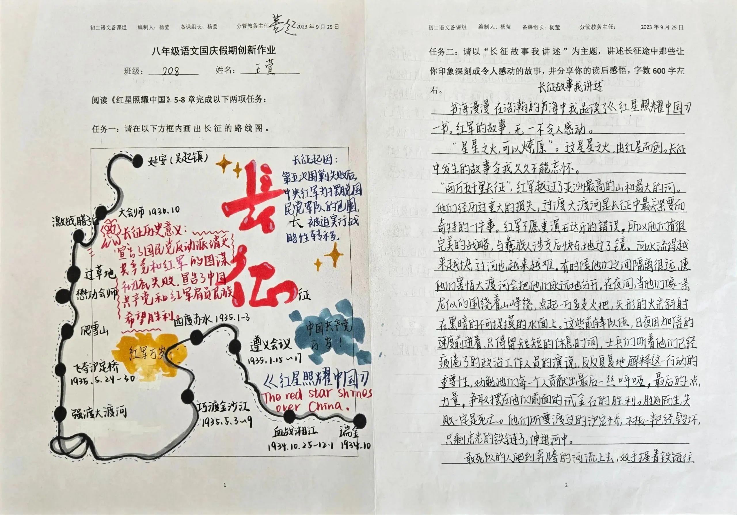 长征路线图与长征故事: 读名著,庆国庆,回望长征,一笔一画抒发爱国情。增强学生对历史事件的理解,培养他们的爱国情怀。