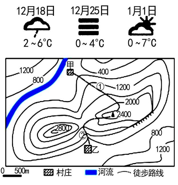 6.图中①、②两条徒步路线分别从甲村、乙村上山,同学们讨论选择路线时观点正确的是( )