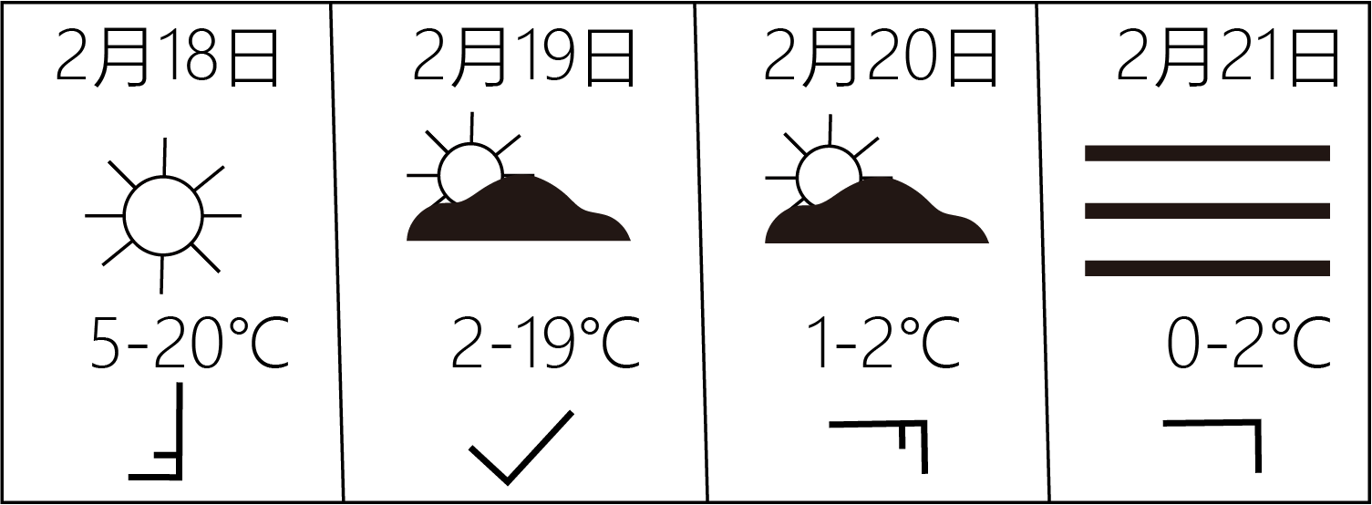 12.根据昆明2月18~21日的天气资料,下面对这四天天气的描述,错误的是( )
