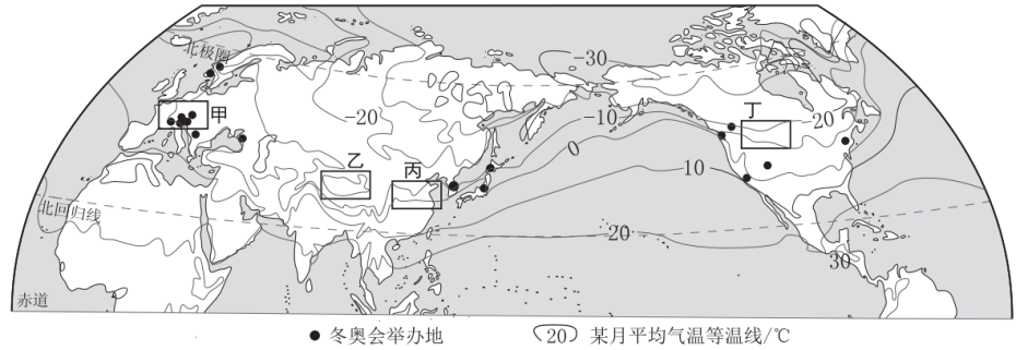 17.该月大部分冬奥会举办地平均气温在( )
