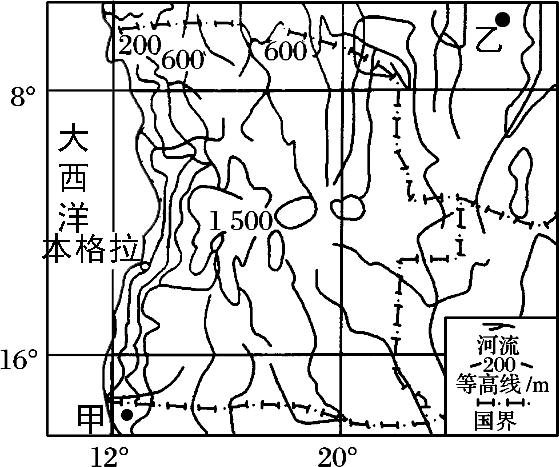 安哥拉是非洲西南部的一个国家,该国中部地区年平均气温在22℃左右,素有“春天国度”的美誉。下图为“安哥拉区域图”以及“甲乙两地气候资料图”,读图,完成下面20-21小题。