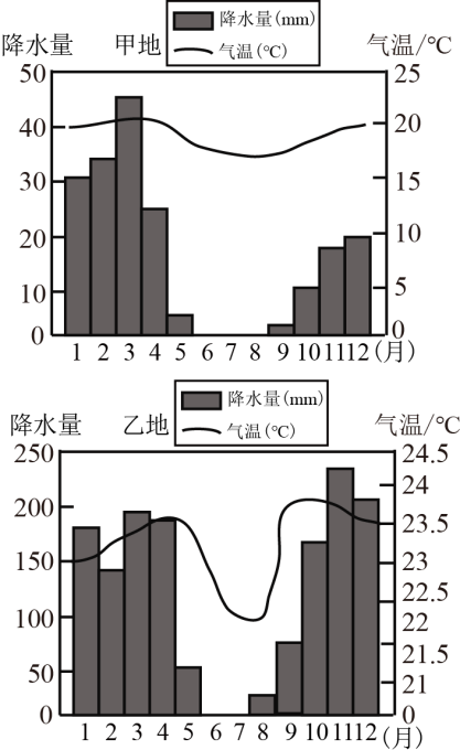 21.比较甲乙两地的降水特征,下列说法正确的是( )