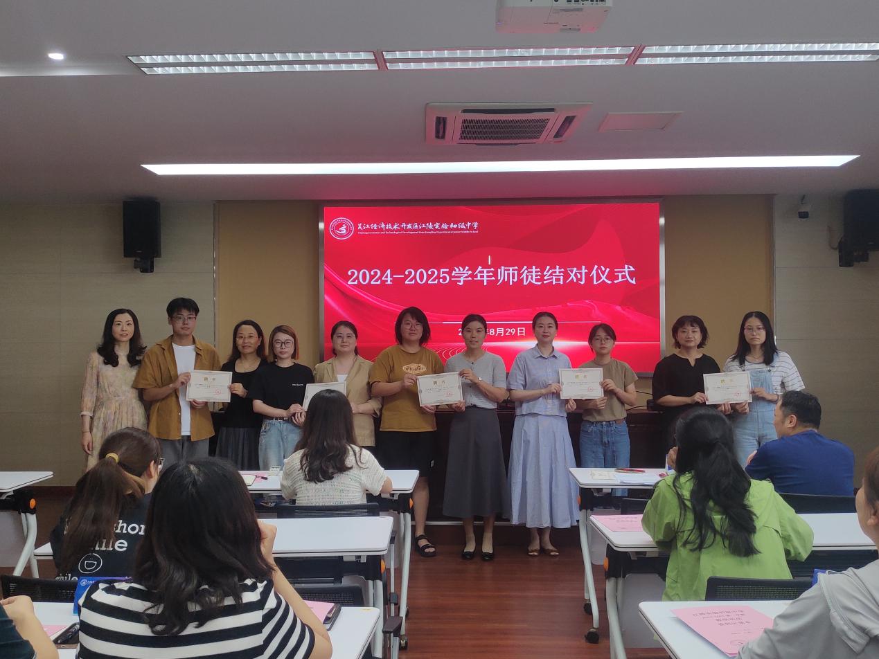 “师徒结对”互学共进活动是我校对新教师进行培训的一个重要环节,也是我校的一项优良传统,新学期我校为新加入的5位老师配好了学科师傅。由汤张艳书记颁发聘书。