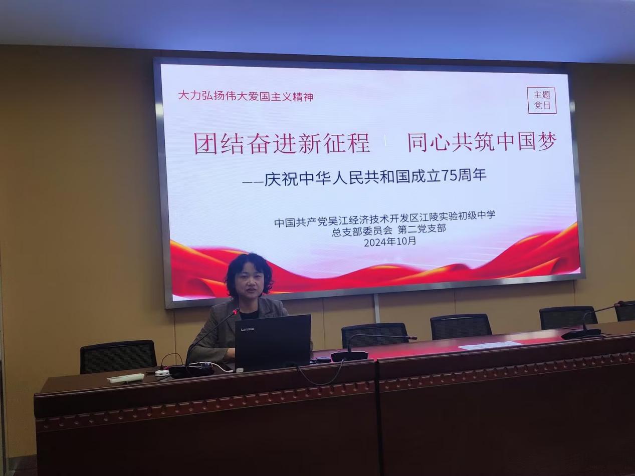 10月18日,吴江经济技术开发区江陵实验初级中学第二党支部召开“团结奋进新征程,同心共筑中国梦——庆祝中华人民共和国成立75周年”主题党日活动,支部全体在职党员参加了本次会议。
