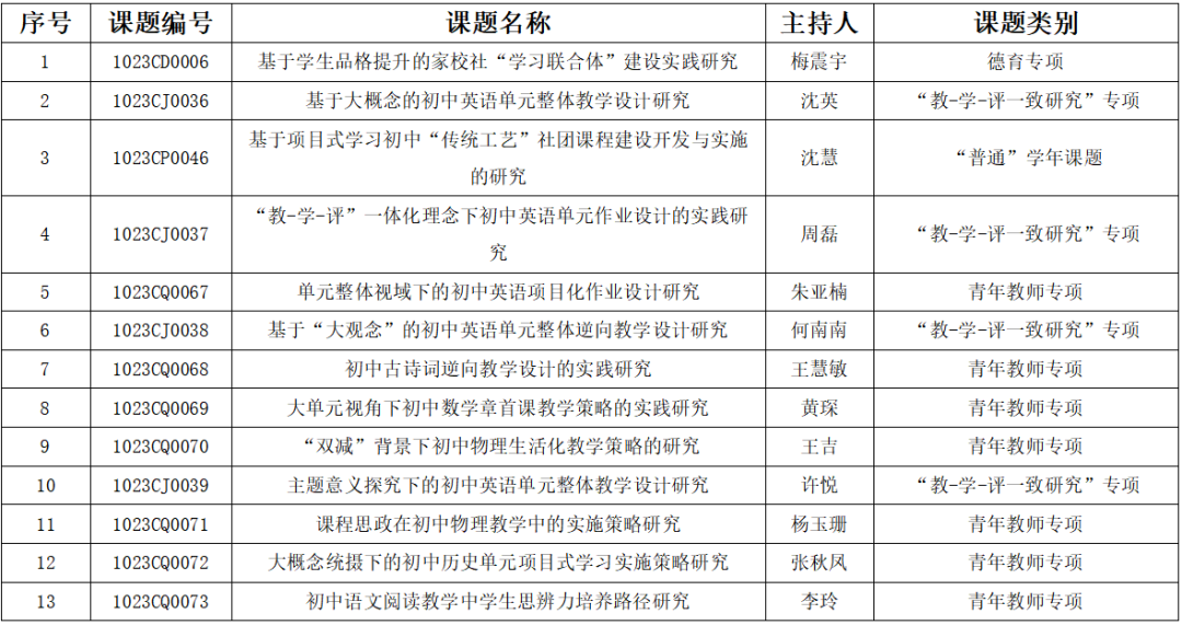 江陵实验初级中学第十批区双学年课题立项如下: