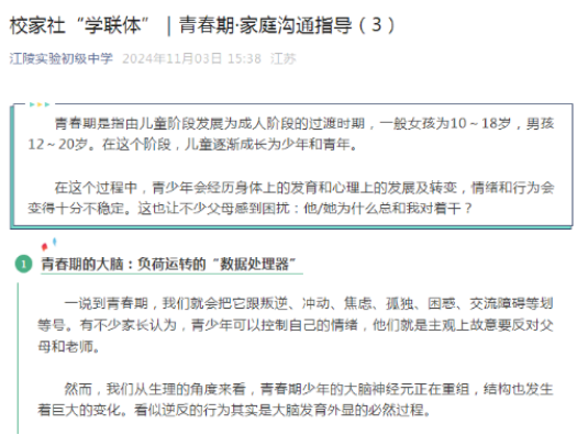 通过家长会,家庭教育指导的现场会等家校沟通形式,学校面向家长开展生命教育主题宣传,并指导家长与孩子建立良好的亲子关系