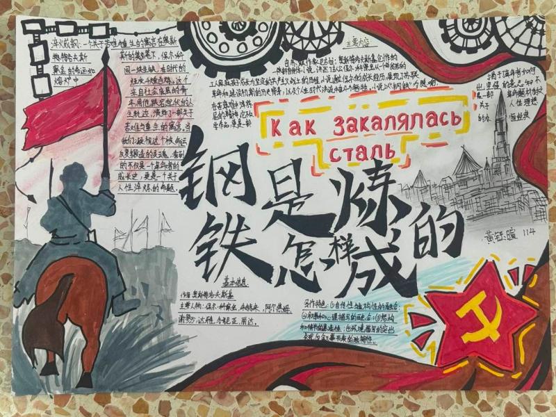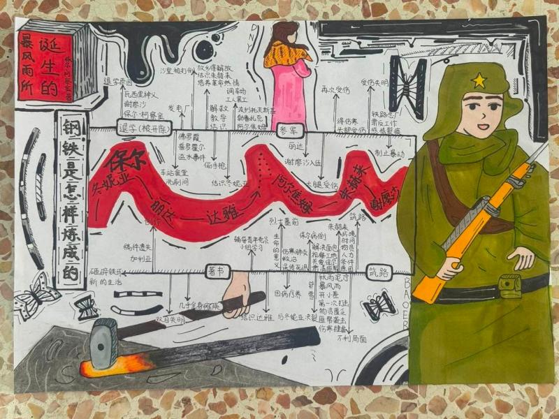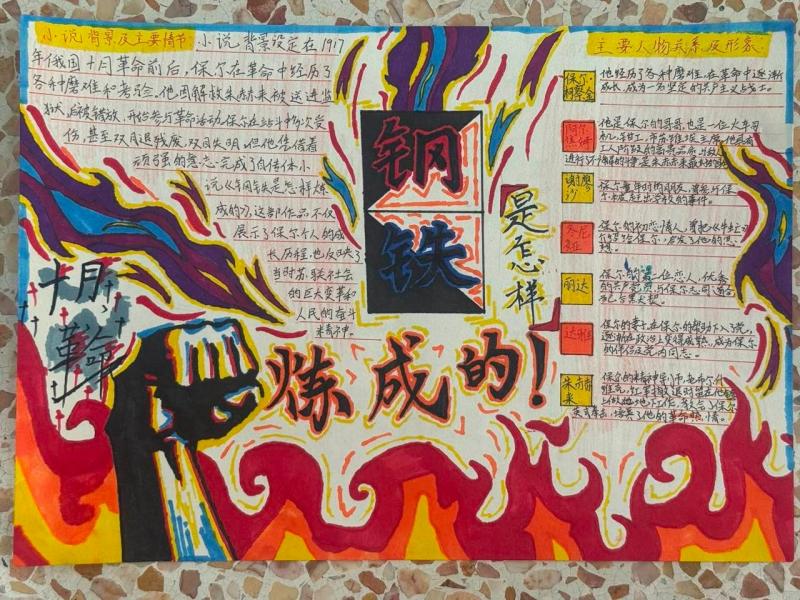 初一年级的同学们以《钢铁是怎样炼成的》为主题,展开了一场别开生面的手抄报比赛。他们用画笔勾勒出保尔·柯察金的坚韧形象,用文字记录下自己的阅读感悟。