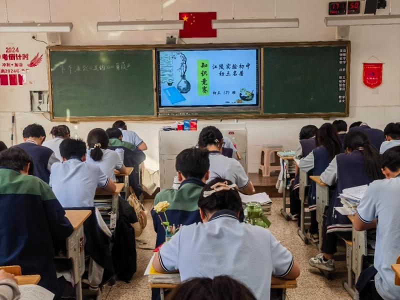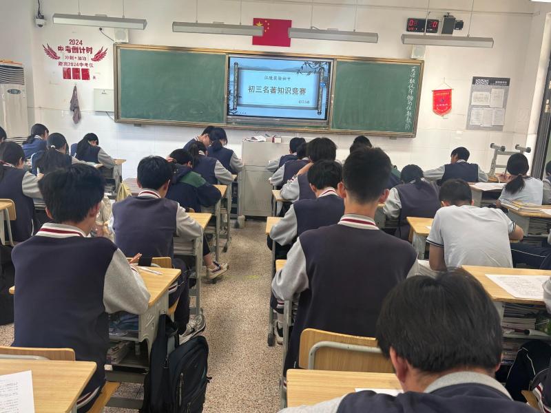 初三年级的同学们则迎来了紧张激烈的名著知识竞赛。比赛围绕《水浒传》《艾青诗选》《西游记》等经典名著展开,选手们凭借扎实的阅读积累,在竞赛中展现出深厚的文学素养。